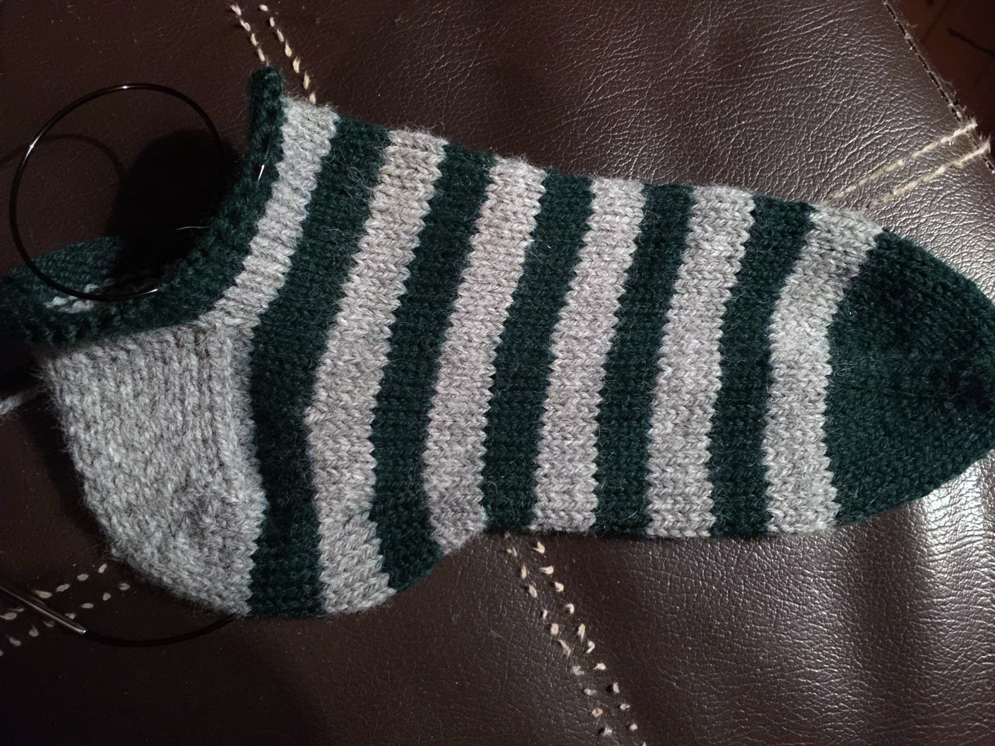 This hasn’t been test knit, and it’s a recipe consisting of my notes jotted down as I worked through this. While containing directions for turning a heel, it assumes a basic knowledge of P2tog, SSK, wrap and turn, M1R, and M1L. Spot something that doesn’t make sense? Don’t know how to do one of those techniques? See a typo or other errata? Please let me know in the comments or contact me here. I’ll be glad to make any corrections needed, and assist with tutorials for the techniques used.